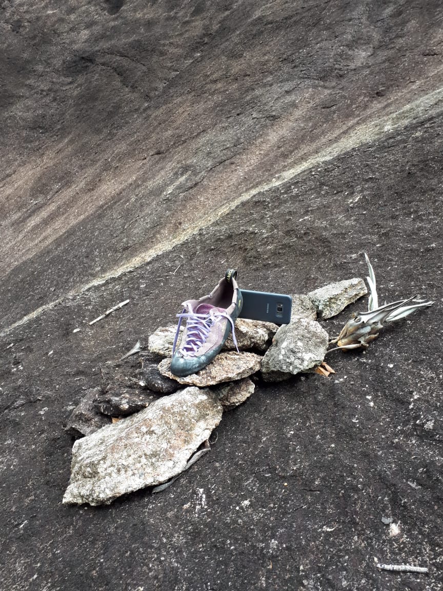 Eu tinha apenas o período da manhã para escalar, nossas opções de escaladas estavam muito limitadas. Tinha que ser alguma via em torno do camping e que não estivesse molhada. As vias da Pedra do Jacaré estavam todas com o topo molhadas. As escaladas que eu ainda não tinha feito na Pedra do Camelo eram duas, e uma delas, a Super Canaleta estava molhada, nossa única opção era a Canaleta Joinville.