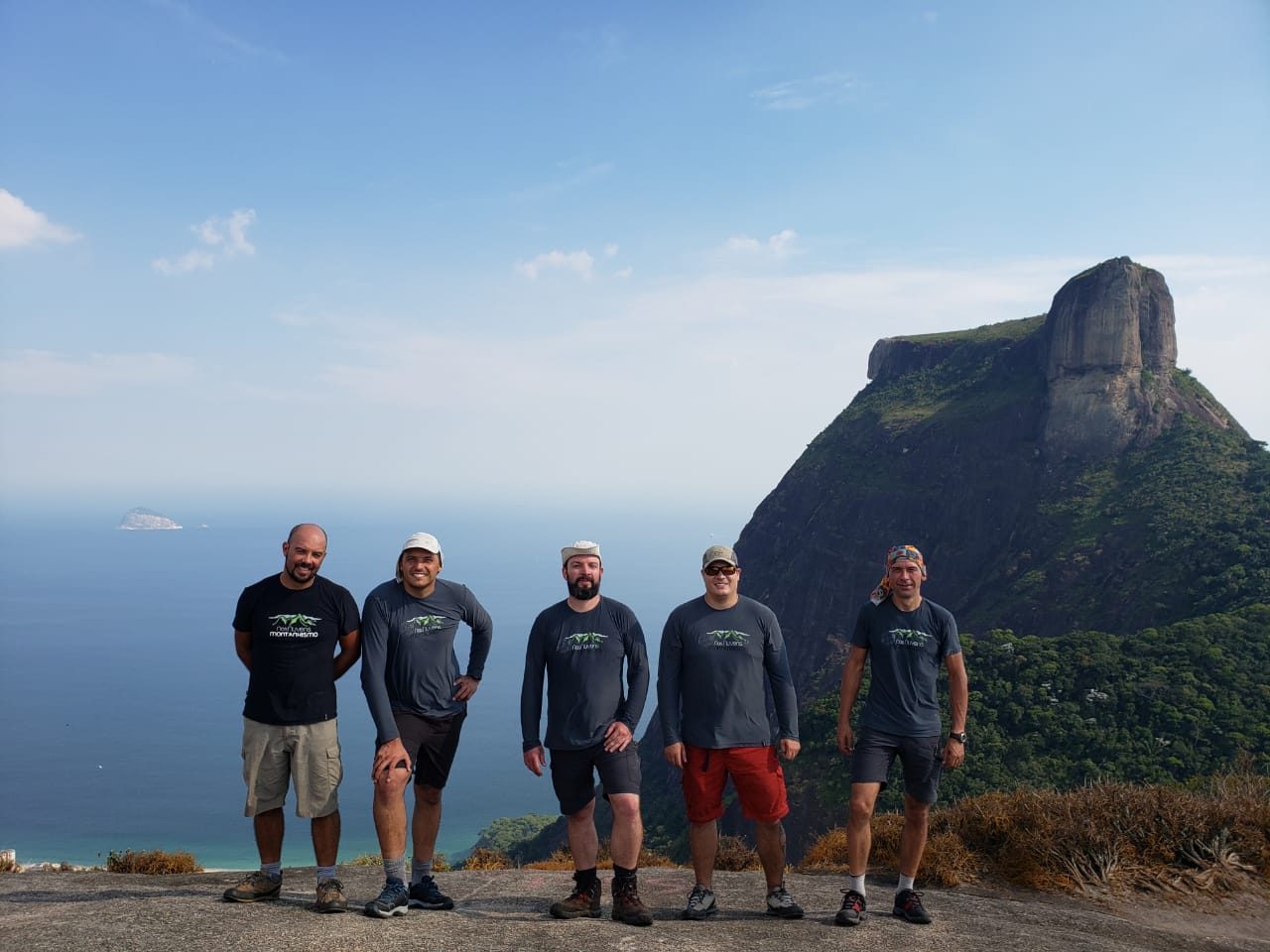 Depois de ver tanta polícia e fuzil pelo caminho nossa primeira pergunta focou a segurança do acesso à base da via e ficamos tranquilos ao saber que nos últimos meses só havia o relato de um ataque de cachorro a escaladores na trilha. O pulguento armado com dentes afiados era um risco aceitável e deitamos o cabelo trilha abaixo. Nem todos, os carecas só andaram mesmo.