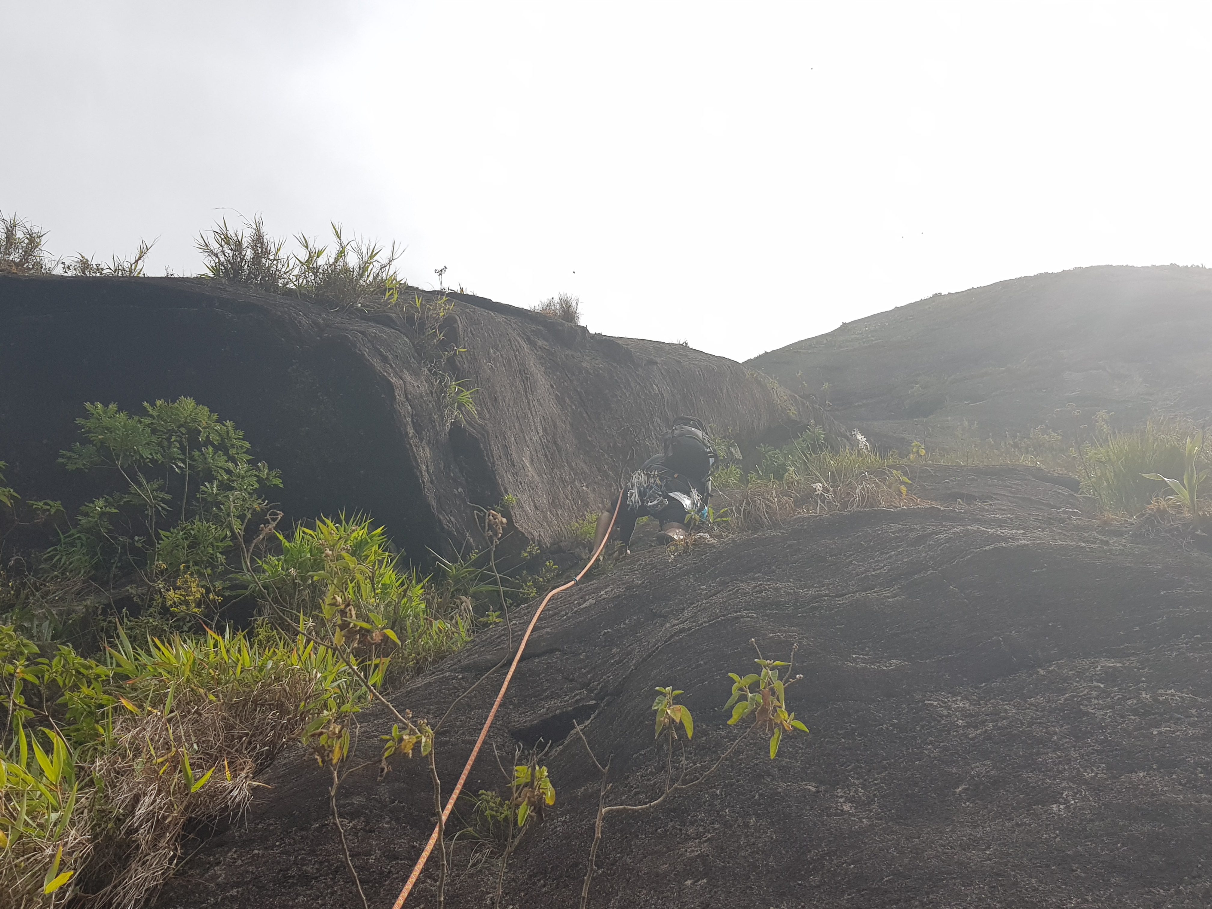 Na ponta da corda, o Juliano seguia de perto as recentes marcas de magnésio que demonstravam as melhores agarras com o Willian sendo devorado vivo pelos mosquitos enquanto dava segue.