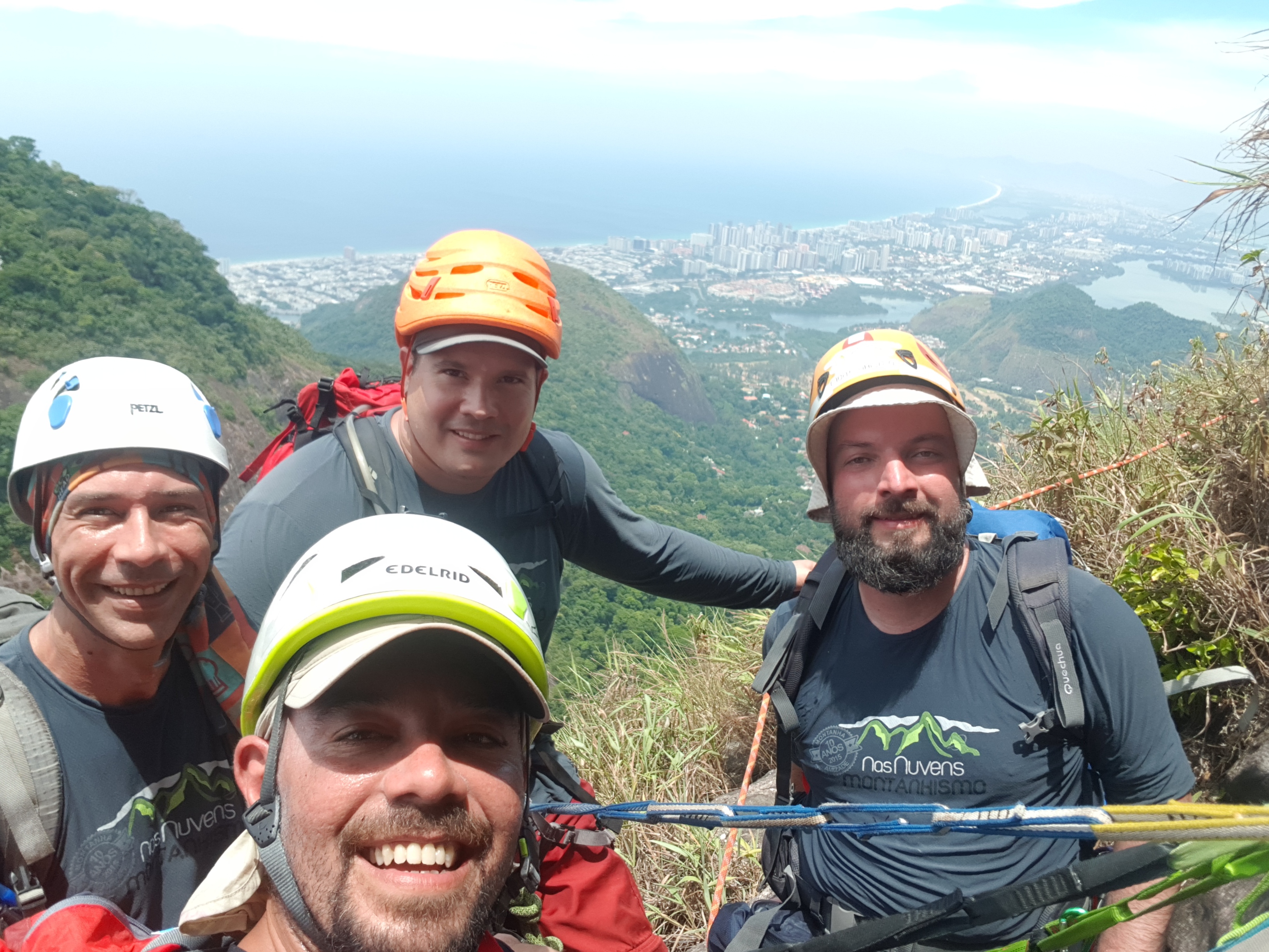 Falar da vista no cume do Pão de Açúcar é totalmente desnecessário e descansamos um bom tempo antes de embarcar no teleférico para descer o morro. Pendurados no vazio ainda vimos uma única dupla fritando ao sol para galgar os últimos metros do cabo de aço na CEPI e na trilha encontramos o Juliano e o Willian nos esperando após abandonar a Italianos.