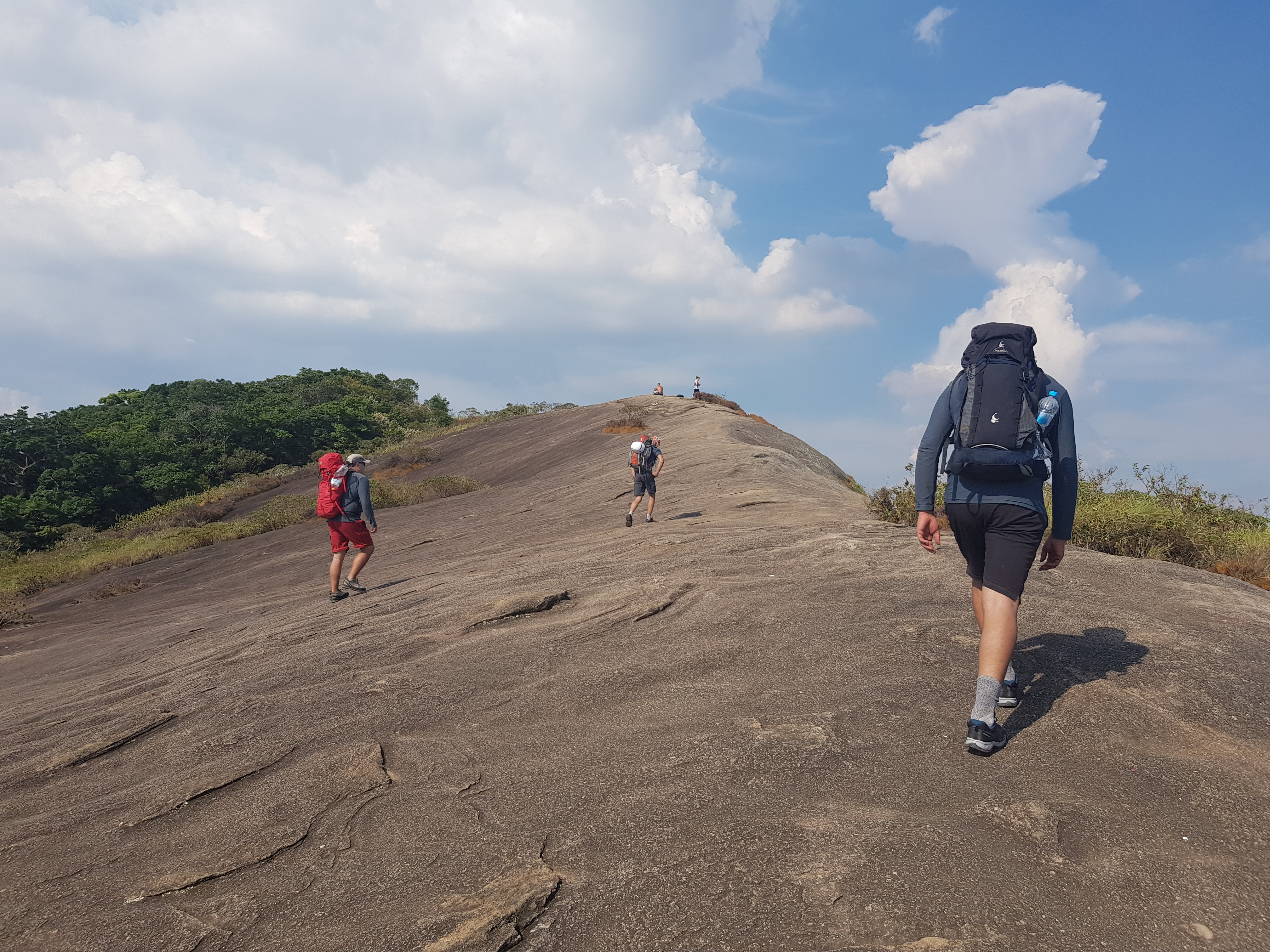 Depois de muitas fotos das belíssimas paisagens descortinadas do cume e do bem-vindo descanso iniciaram a descida pela trilha mais suave onde o calor continuava a cobrar seu preço em dores de cabeça, náuseas, tonturas e muita fraqueza, nítidos sintomas de insolação.