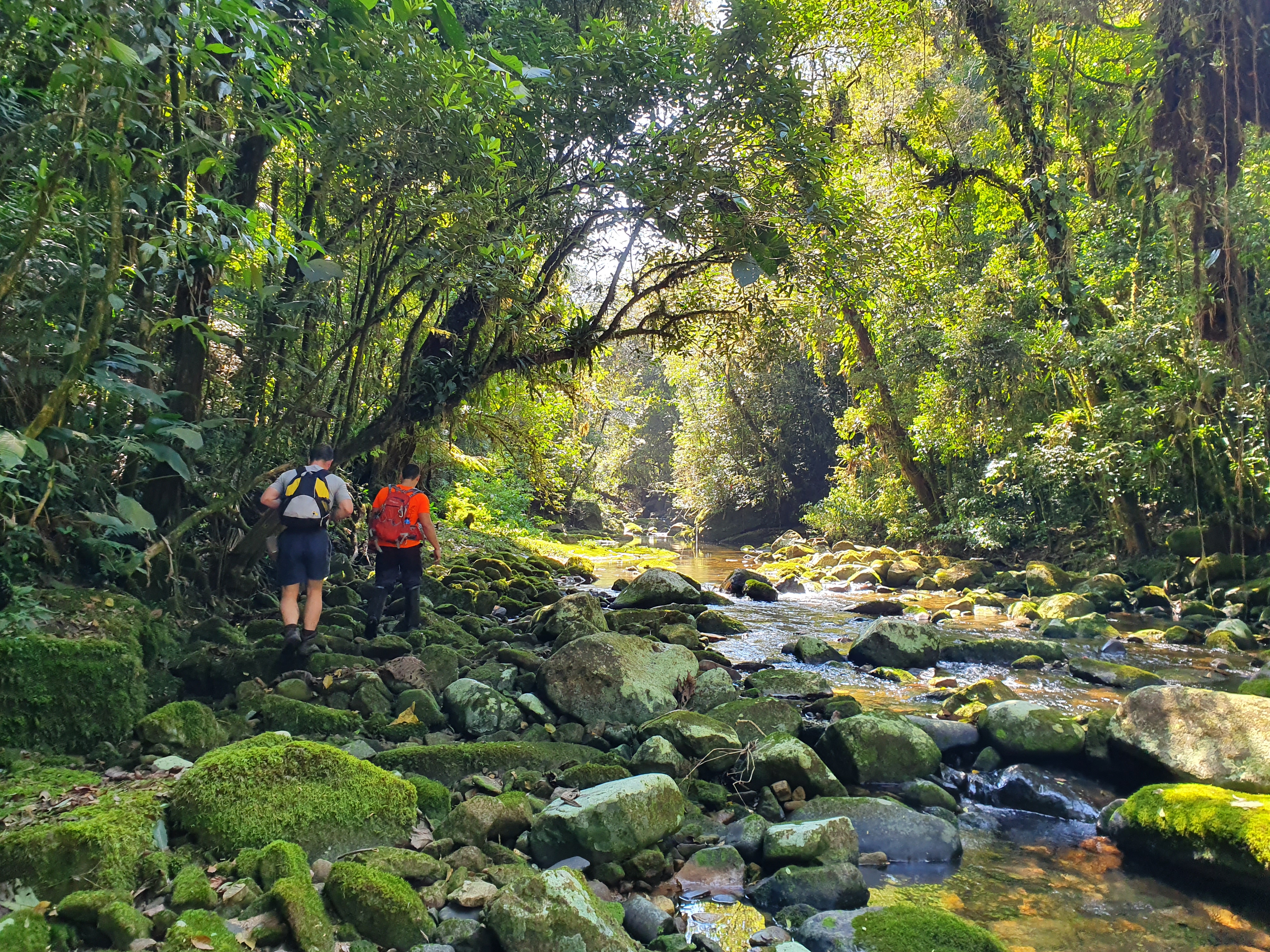 Do que eu me lembrava da última vez que tinha passado por essas bandas, era de levar muitas horas descendo o Rio Mãe Catira até chegar na cachoeira, ainda não conhecia a trilha que cortava quase que em linha reta todas as curvas que o curso do rio fazia.