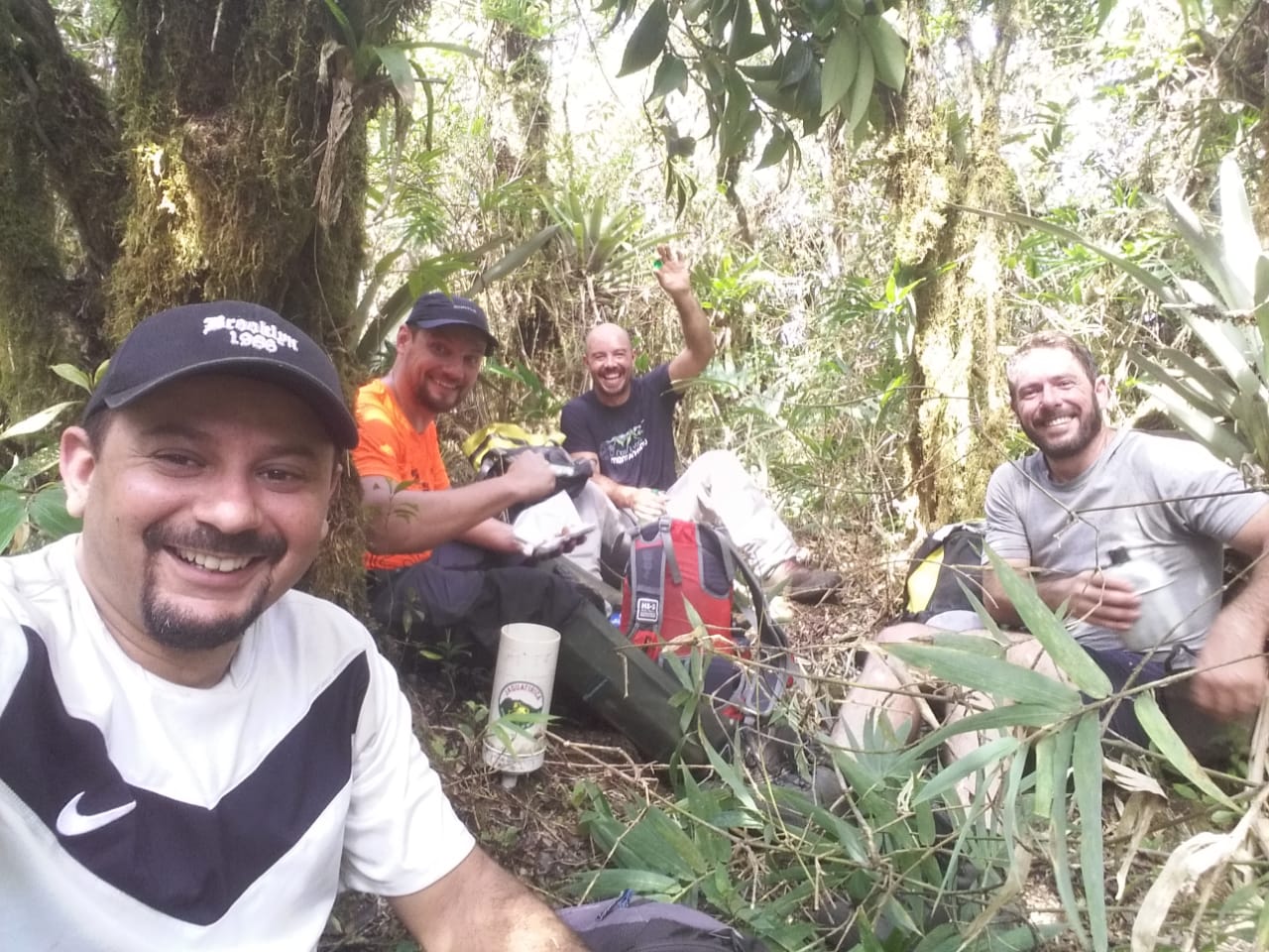 Depois de 6 horas de caminhada chegamos ao cume do Araponga. Subida bem cansativa e que acabou ficando mais desgastante por causa do calor. Um tempo de descanso para a galera era merecido.
