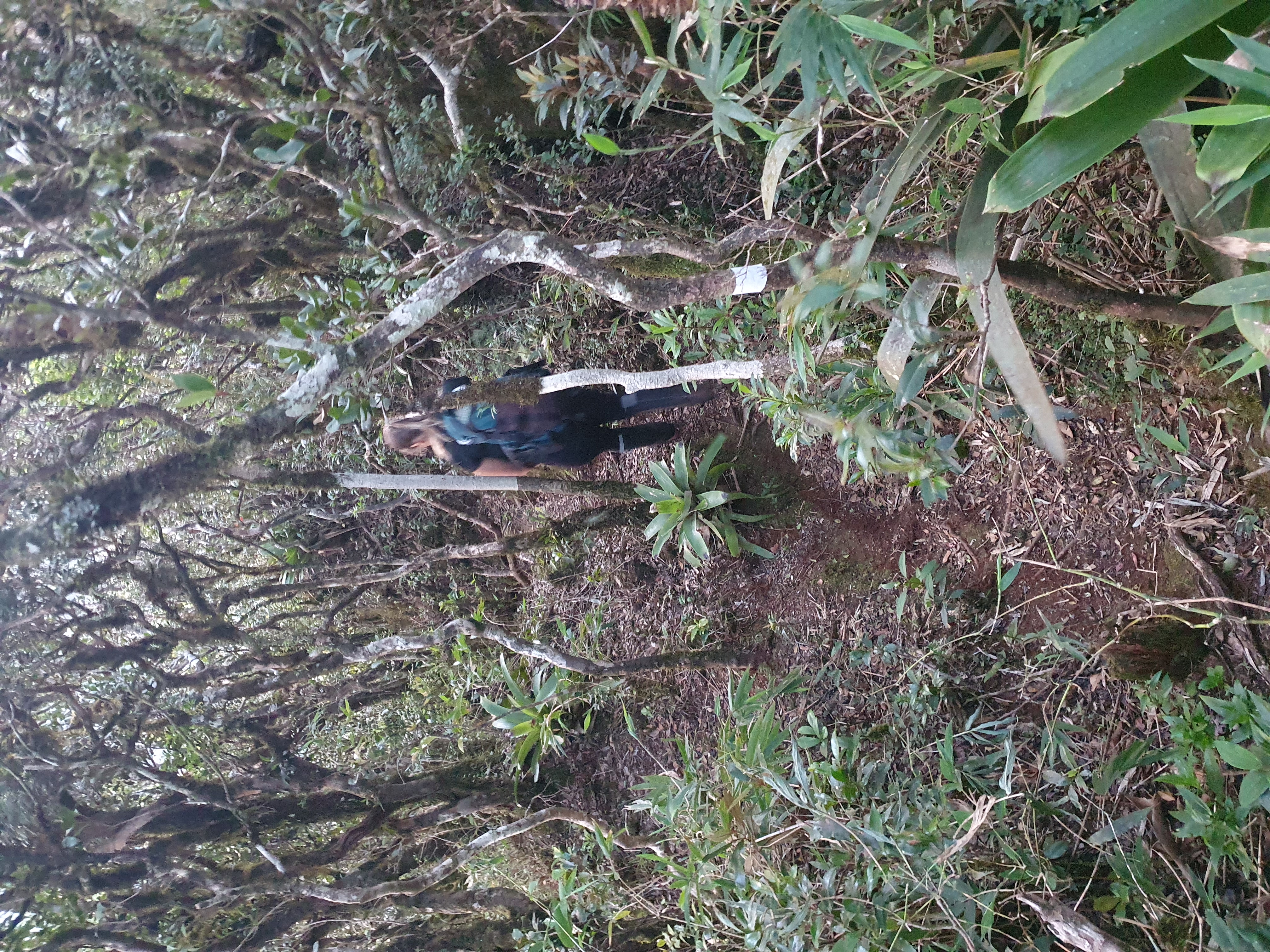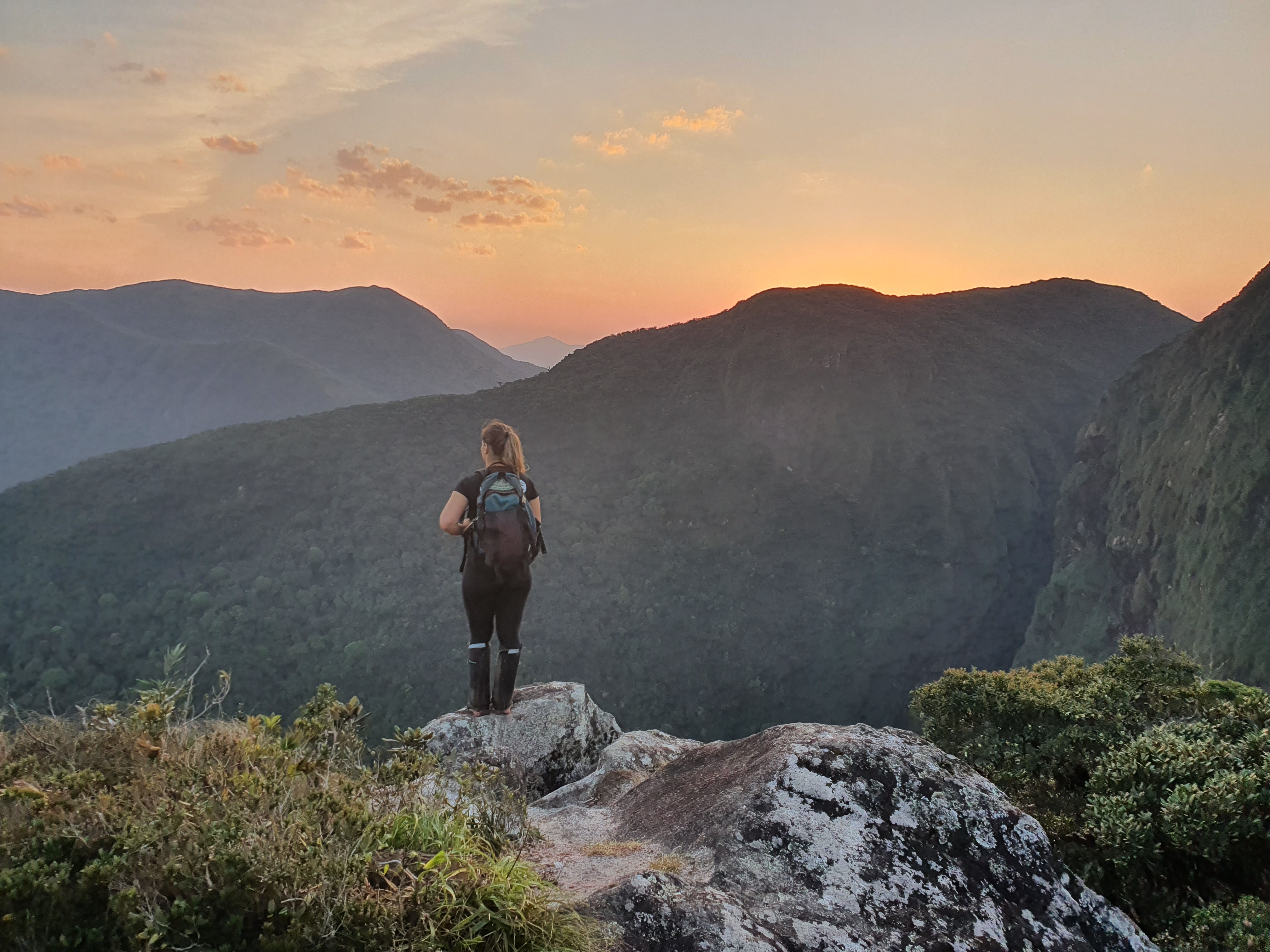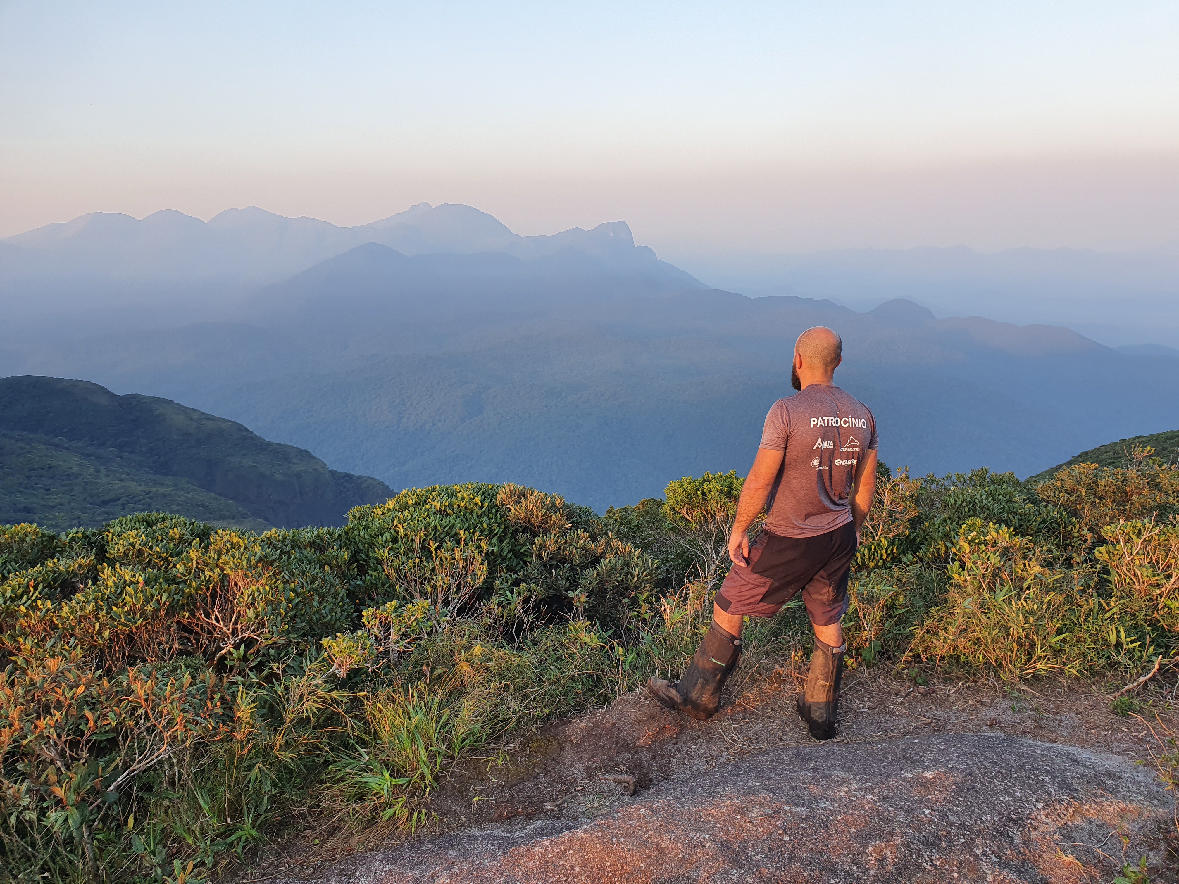 Enquanto tirava algumas fotos a Lu foi descendo a trilha para o Morro 7, não levei mais de 10 minutos para iniciar a descida, acelerei o passo para alcançar a Lu que andava na frente, mas só fui encontrar ela quase no cume do Morro 7, não levamos 30 minutos de um cume ao outro. Quando saímos da fazenda a meta era chegar no cume do Morro 7 ainda de dia, as 17:40 estávamos assinando o caderninho de cume.