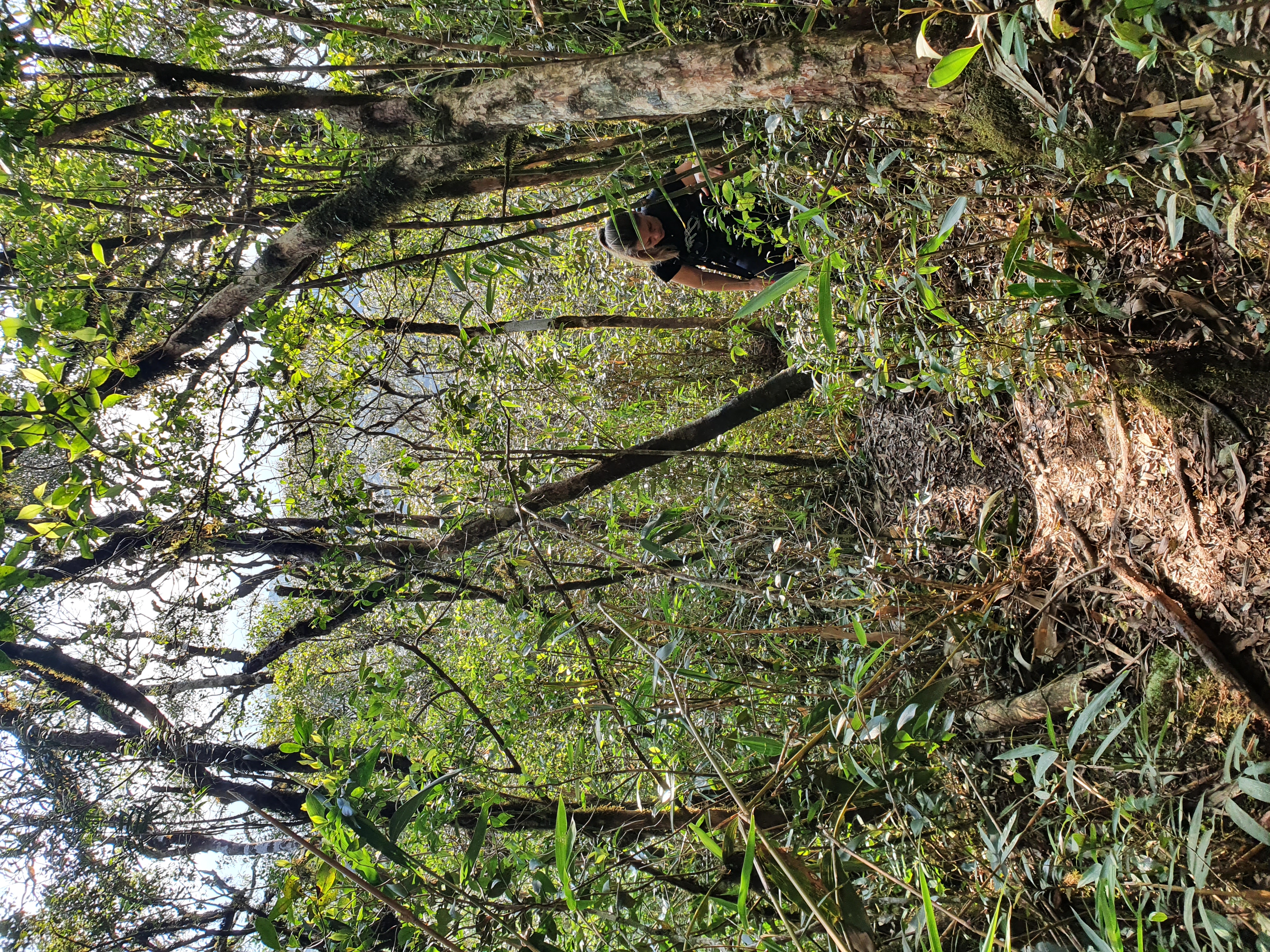 O sol não estava mais a pino, o vento ajudava a refrescar, mas mesmo assim ainda estava bem abafado. Subimos em um ritmo constante sem forçar muito para não se desgastar tanto. Em pouco tempo chegávamos no cume do Mãe Catira, para ser mais exato, 1:30 do inicio da fazenda até o cume.